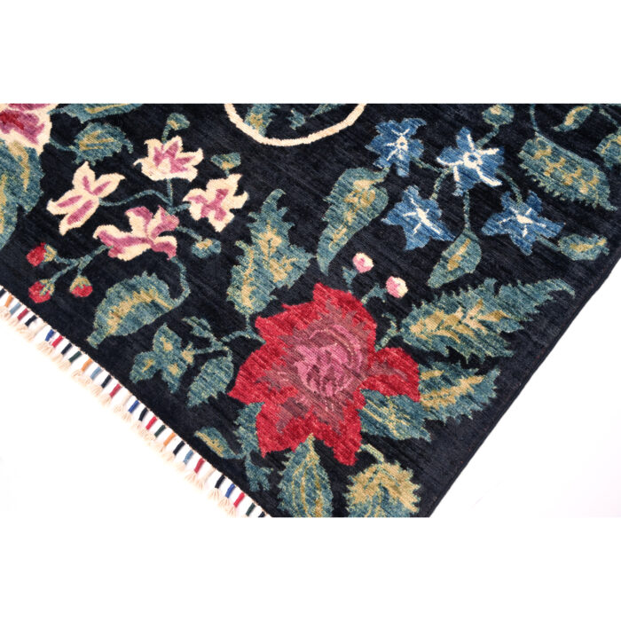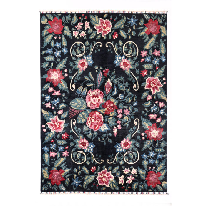 Caretteristico è anche l’uso del colore nero, poco utilizzato tra i tappeti annodati.