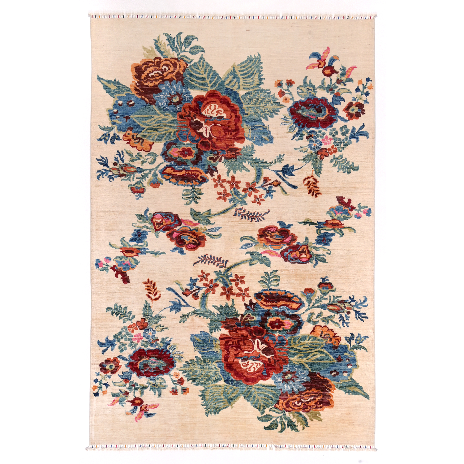 Questi Tappeti annodati a mano nelle zone tra il Pakistan e l’Afganistan si ispirano ai famosi tappeti Gharebagh
