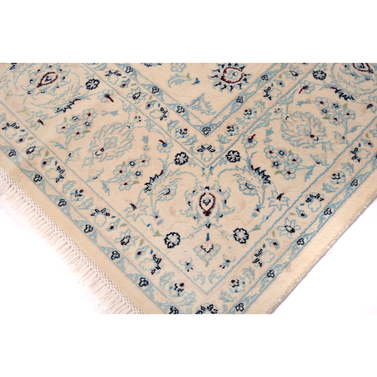 Questi tappeti sono annodati a mano nella città di Nain, che si trova nella Persia centrale. I colori sono solitamente tenui, con prevalenza di beige, azzurro, blu e rosso. Il vello è in lana e seta; trama e ordito di cotone. Il disegno più comune è caratterizzato da un medaglione centrale e motivi floreali tipici dei tappeti classici orientali.