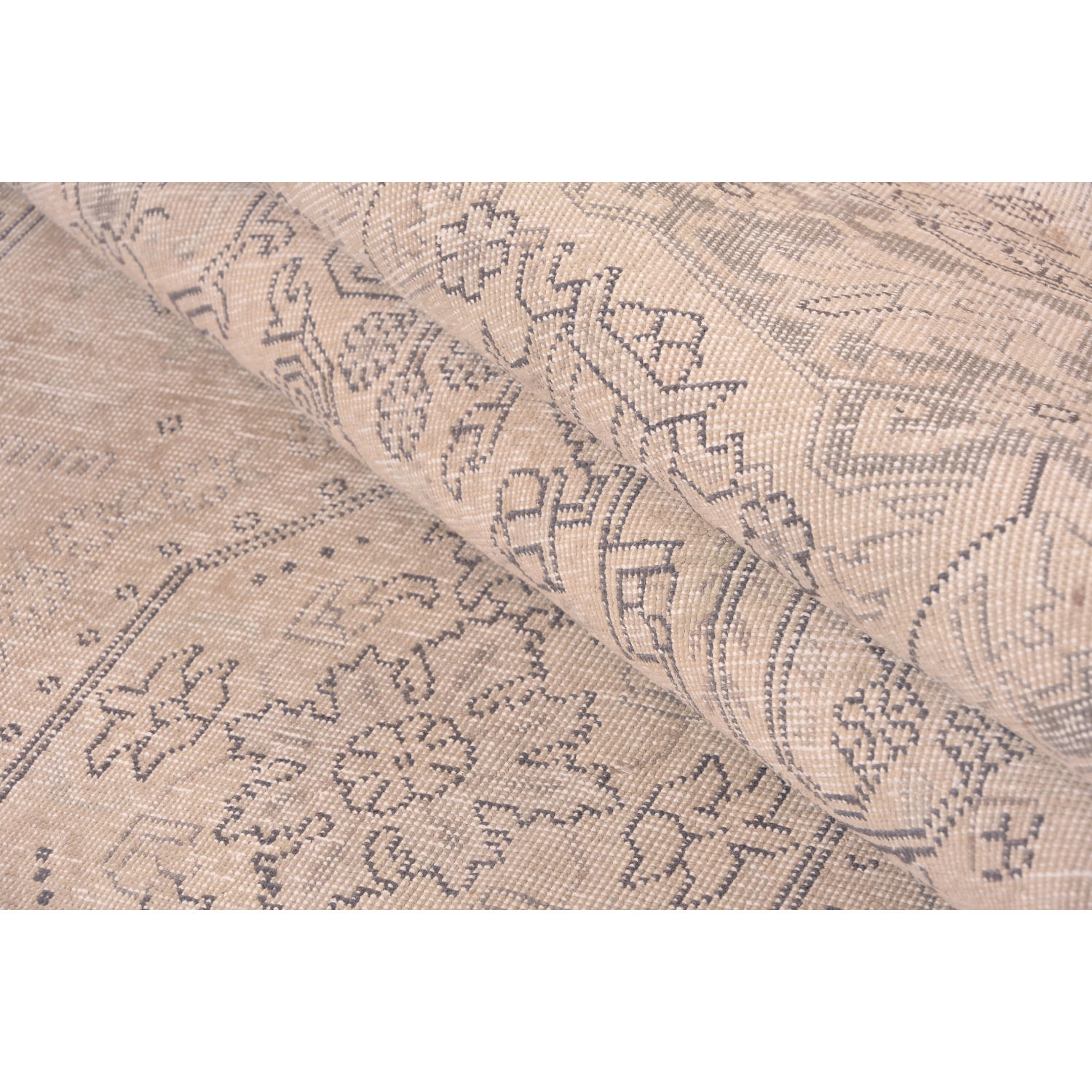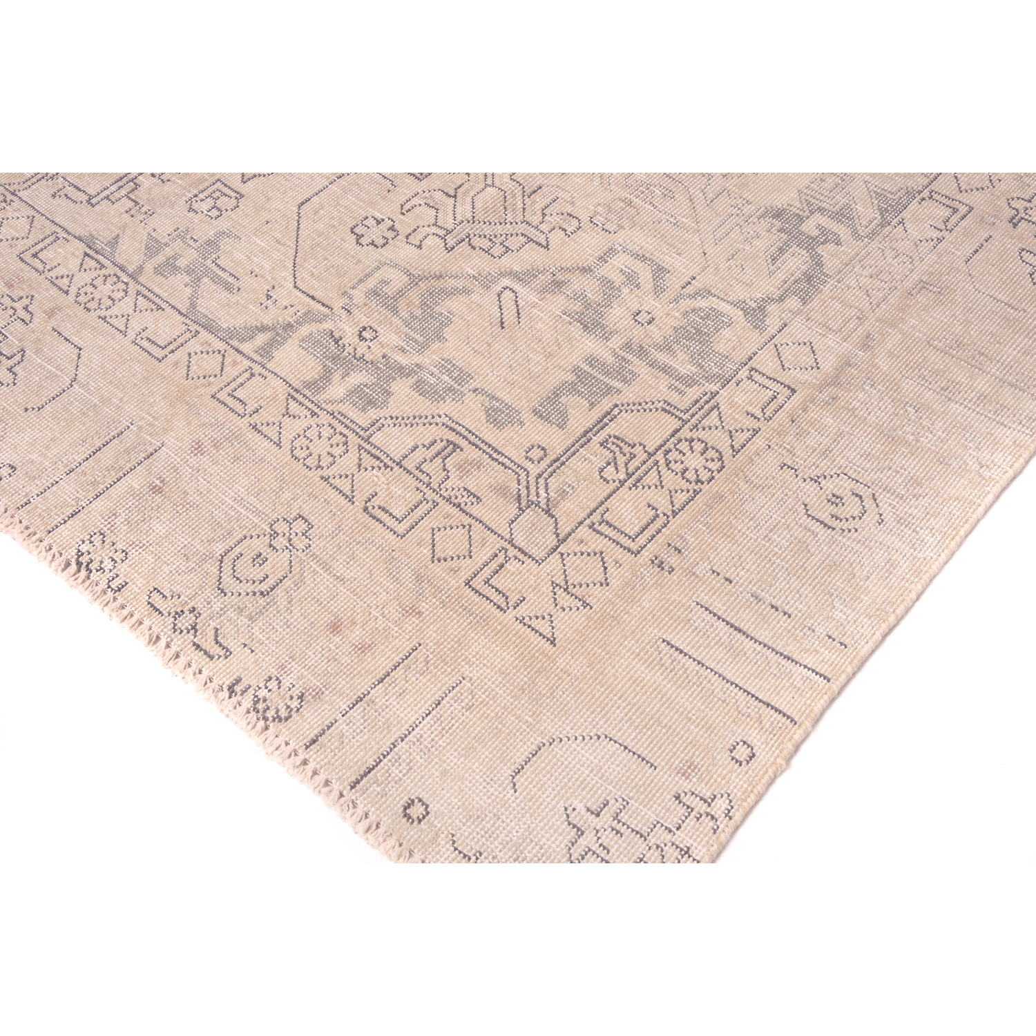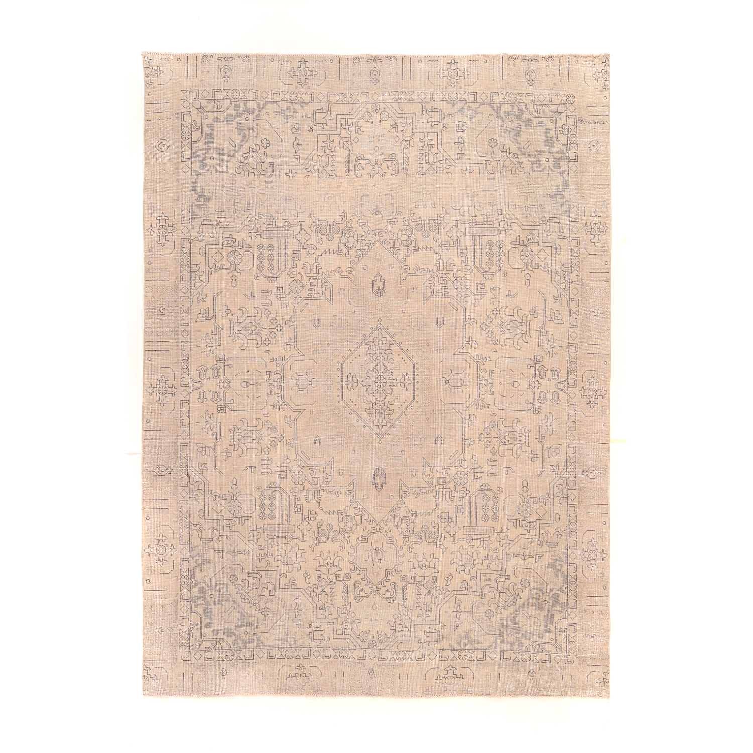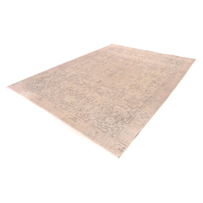Ogni tappeto viene attentamente selezionato e decolorato per poi essere tinto di nuovo. Il risultato è un mix fra tappeto tradizionale, combinato allo stile rétro contemporaneo.